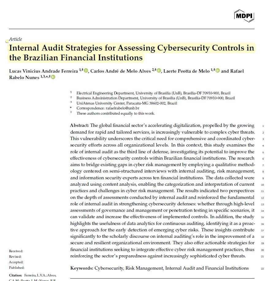 hashtag#CyberSecurity hashtag#InternalAudit hashtag#Governança hashtag#Cibersegurança hashtag#GestãoDeRiscos hashtag#Auditoria hashtag#SegurançaDaInformação hashtag#PesquisaAplicada hashtag#PPEE